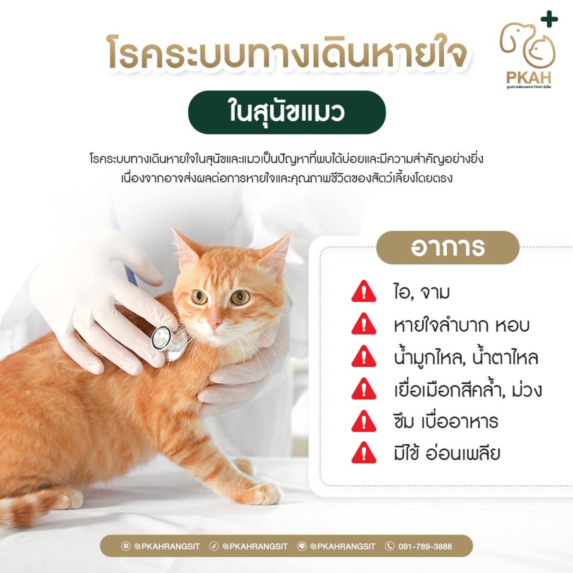 ปัญหาที่พบได้บ่อยและมีความสำคัญอย่างยิ่ง เนื่องจากอาจส่งผลต่อการหายใจและคุณภาพชีวิตของสัตว์เลี้ยงโดยตรง โรคเหล่านี้สามารถเกิดได้ทั้งในระบบทางเดินหายใจส่วนบน และส่วนล่าง อาการผิดปกติของระบบทางเดินหายใจ ไอ (Coughing) จาม (Sneezing) หายใจลำบาก (Dyspnea) / หอบ น้ำมูก/น้ำตาไหล