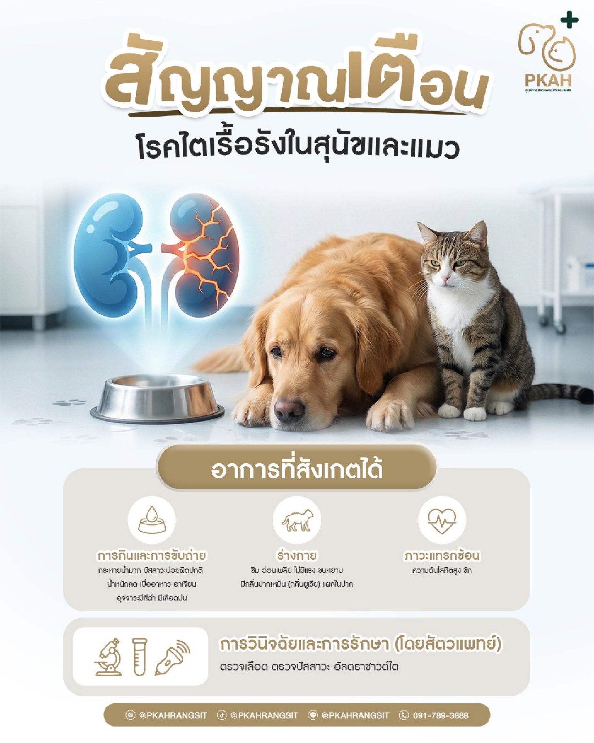 โรคไตเรื้อรังในสุนัขและแมว (CKD) คือภาวะที่ไตเสื่อมการทำงานอย่างช้าๆ ทำให้ขับของเสียได้ไม่ดี พบได้บ่อยในสัตว์สูงวัย หรือสัตว์เลี้ยงที่มีความผิดปกติตั้งแต่กำเนิด