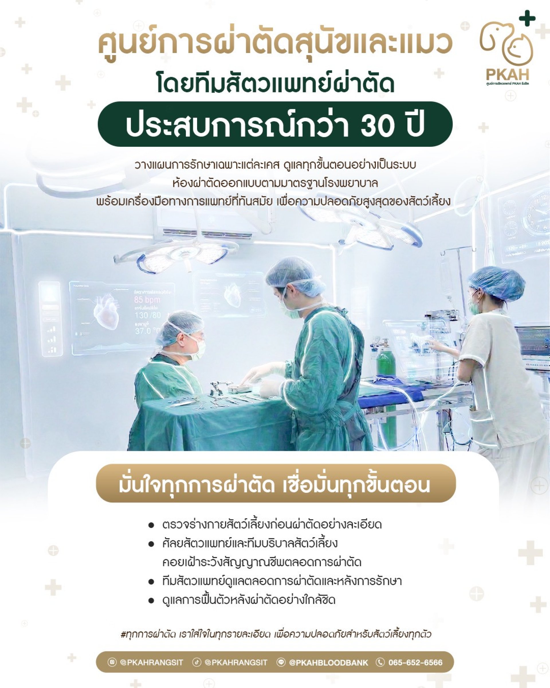 - ทีมสัตวแพทย์ดูแลตลอดการผ่าตัดและหลังการรักษา