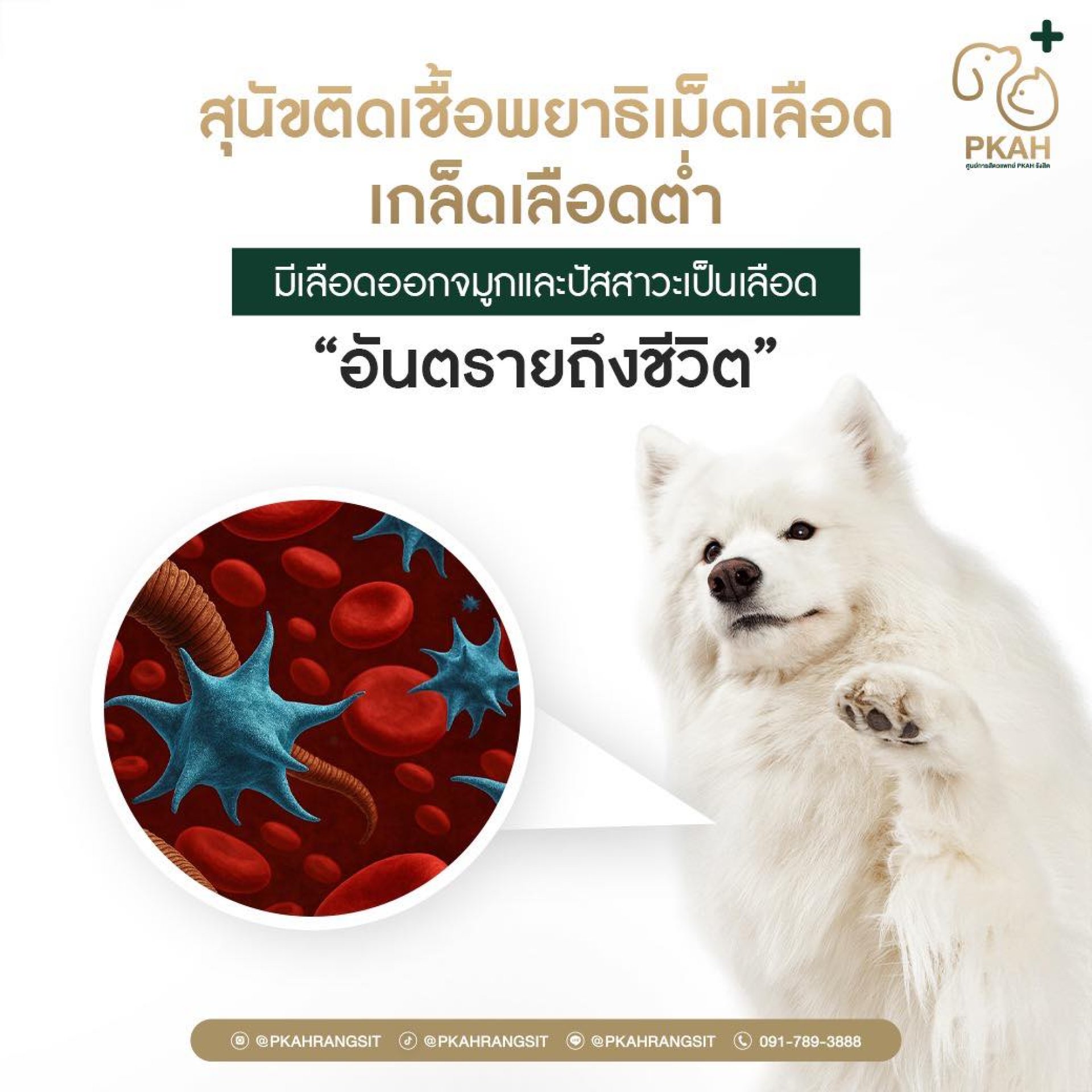 สุนัขติดเชื้อพยาธิเม็ดเลือด ทำไมเกล็ดเลือดถึงต่ำ มีเลือดออกจมูกและปัสสาวะเป็นเลือด